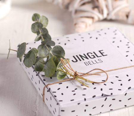 Jingle bells, jingle bells! Surprise everyone this Christmas with the Christmas flat box, patterned with confetti and decorated with hemp string and a sprig of eucalyptus.