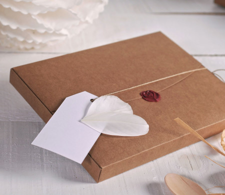Beautiful and elegant kraft box, delicately decorated and perfect for special events, weddings or anniversaries. Ideal for giving photos and memories. Wrap special gifts in an original way. This kit includes: