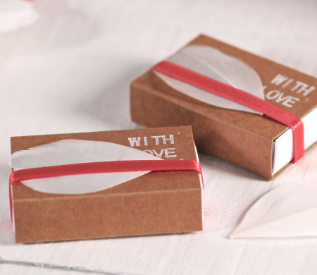 Charming matchbox with very romantic decoration. Add a satin ribbon and delicate feathers to make a pretty little gift box for romantic occasions such as Valentine's Day or a wedding anniversary.