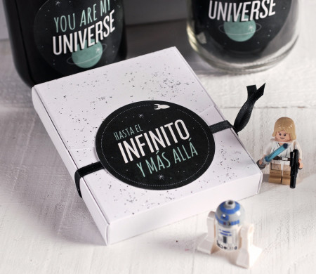 To infinity and beyond! This cute decoration makes this gift box into something very special. The galactic themed label adds a special touch, perfect for space lovers.