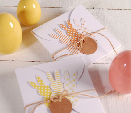 Invitations for a Baby Shower with this beautiful box for CD's or Invitations. White, decorated with yellow bunny labels, a hemp string and a Kraft label to customise with the name of the baby or the date of the celebration.