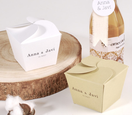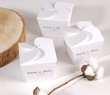 Go for elegance on your wedding day! This small box with flower-shaped closure is ideal for all kinds of small wedding favours. Chocolates, salt jars, bracelets... Personalise it with the names of the bride and groom, and make sure your guests always keep the box as a souvenir.