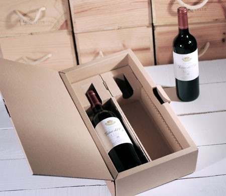 Gift box for two bottles, very resistant and with a carry handle. Ask here for options to screen-print your company logo for a professional look.
